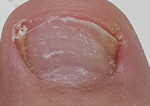 아래 사진처럼 케라셀을 계속 바르면 발톱이 좀 물러집니다. 그게 좋아지는 과정인가 했는데...