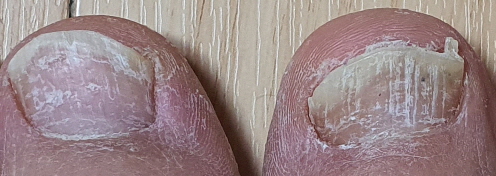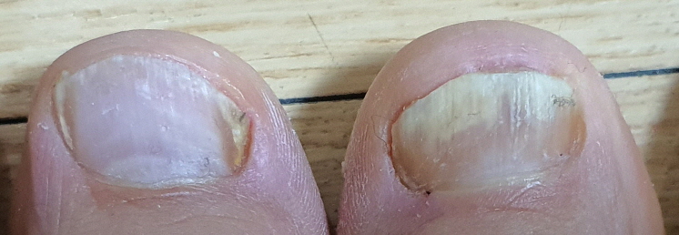 오른쪽 엄지가 심하고 왼쪽 엄지는 한쪽 끝에서 상태가 점점 안좋아지고 있습니다.