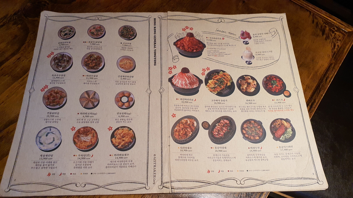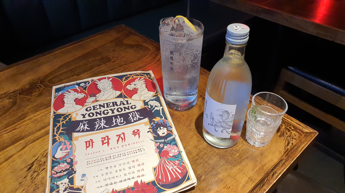 메뉴는 홍콩 현지의 야시장 스타일의 작은요리와 용용선생의 시그니쳐인 큰요리들로 구성되어 있으며 또한 ‘고량주 문화의 개척자’로 광고하고 있습니다.