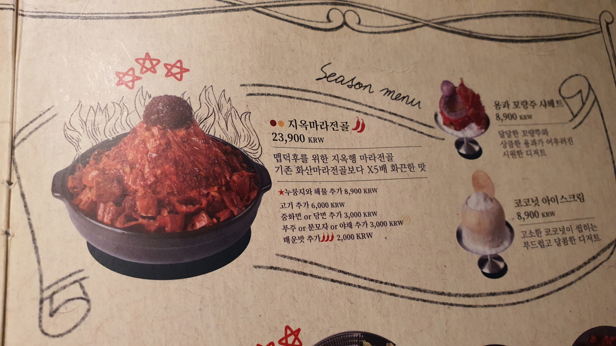다른테이블을 보니 다른 것들도 많이 먹고 있었습니다. 비주얼은 지옥마라전골이 압도적이네요. ㅋ