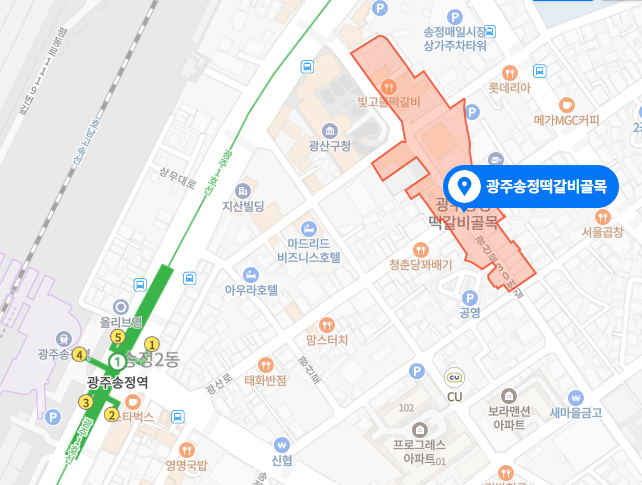 떡갈비 골목은 광주송정역에서 10분 정도 거리입니다.
