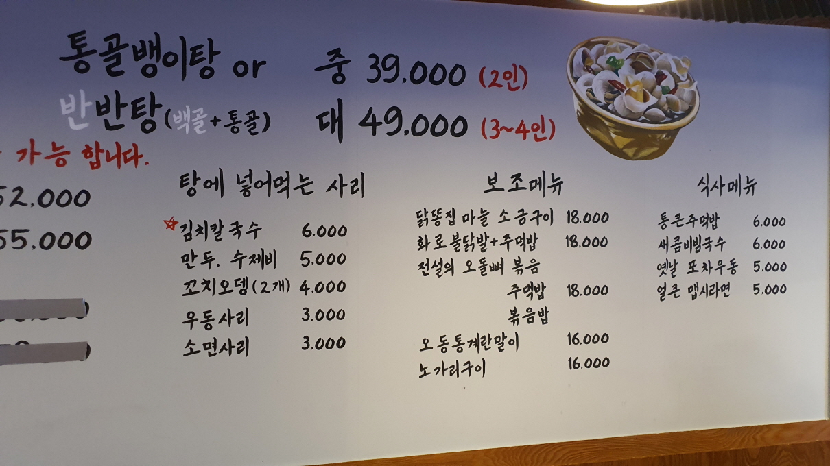 크게 백골뱅이와 통골뱅이를 이용한 메뉴들이네요. 탕과 무침 등 다양합니다.