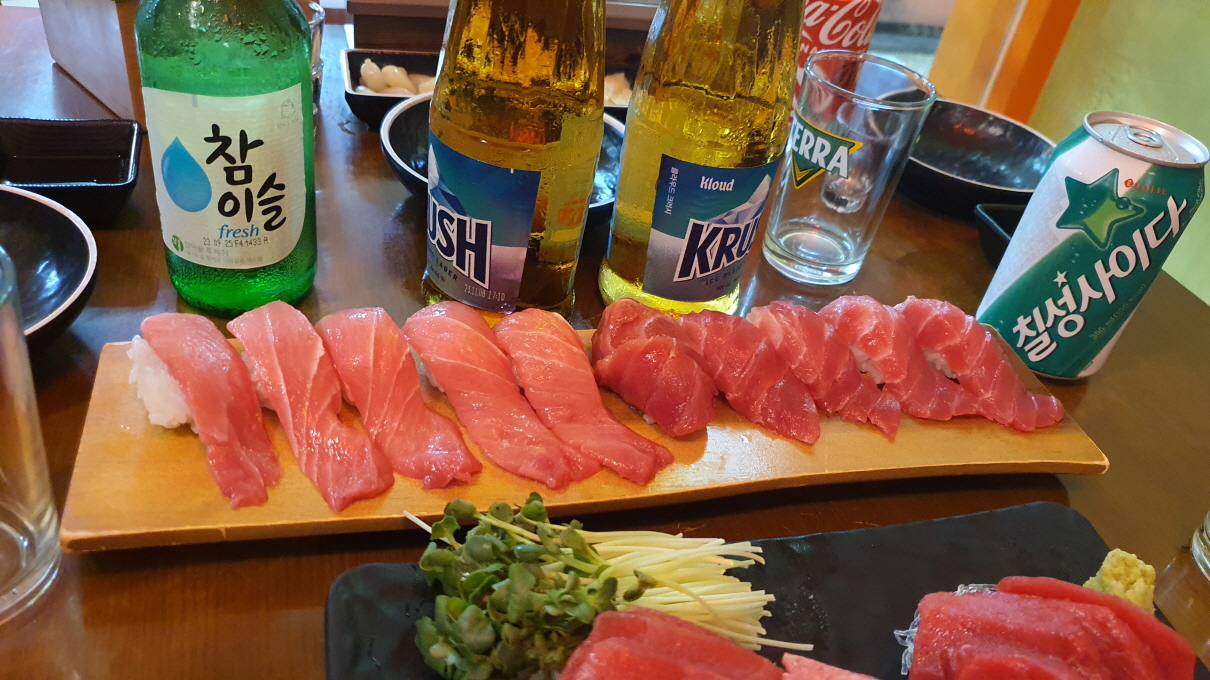 십여명 모임이 있어서 어디로 갈까 하다가 아예 통으로 빌려서 참치를 먹으러 갔습니다.