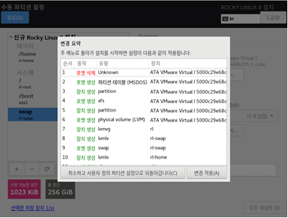 설정 완료 후 팝업 화면에서 변경 적용을 수행한다.
