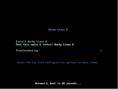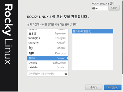 Rocky linux 설치 디스크를 이용하여 생성한 USB disk를 이용하여 usb 부팅을 하면 다음과 같은 화면이 표시된다.