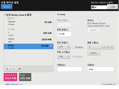 여기서는 256G SDD에 Rocky linux를 설치 하고자 한다 (/dev/sda)
