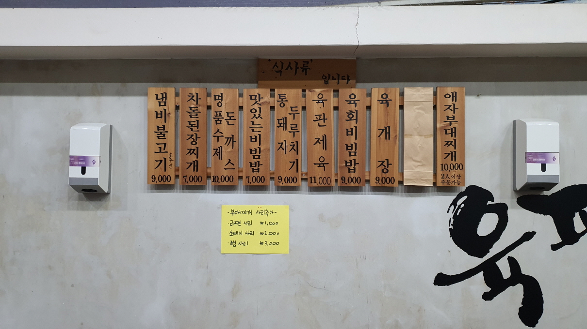 부대찌개가 유명하긴 하지만 냄비불고기, 차돌된장찌개, 명품수제돈까스, 비빔밥, 두루치기, 육판제육, 육회비빔밥 등등 다른 것들도 맛있습니다.