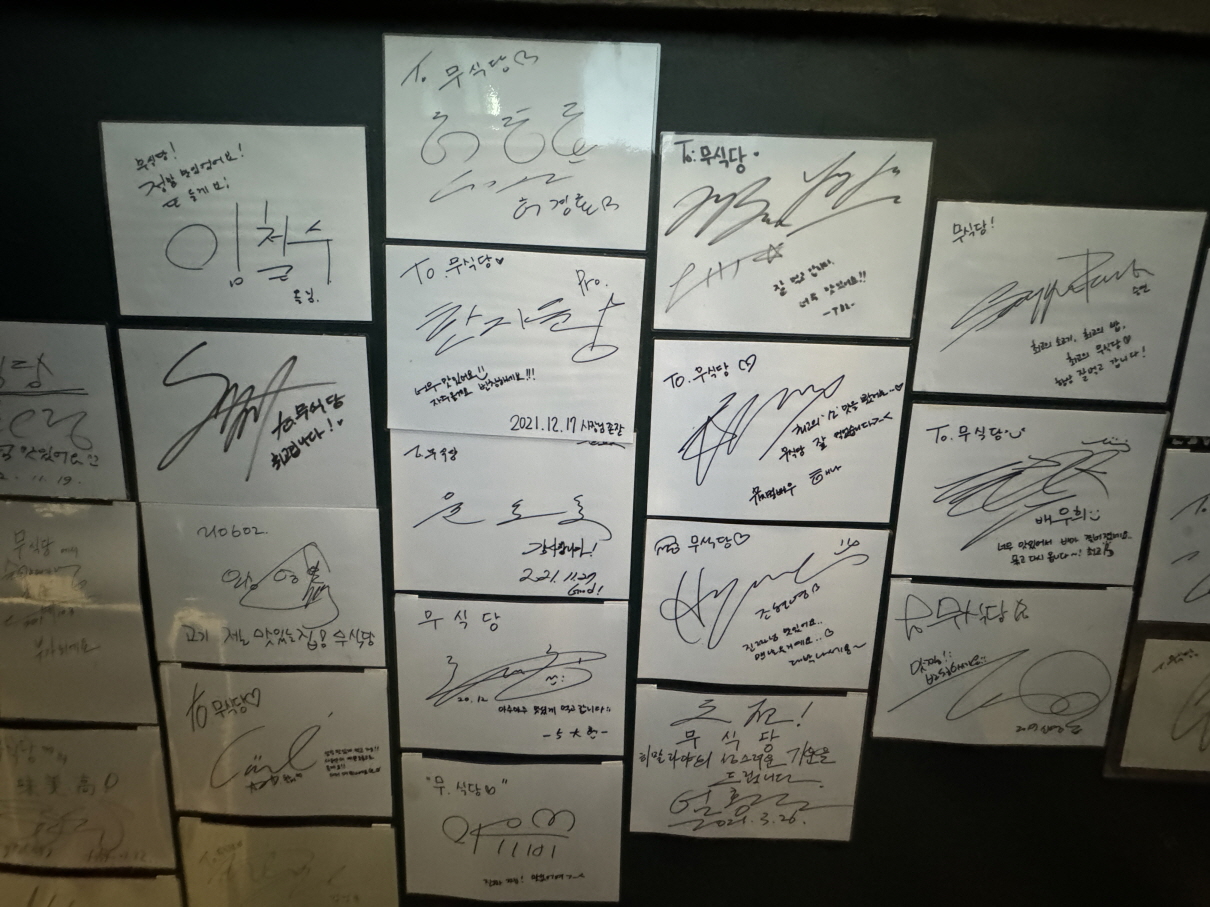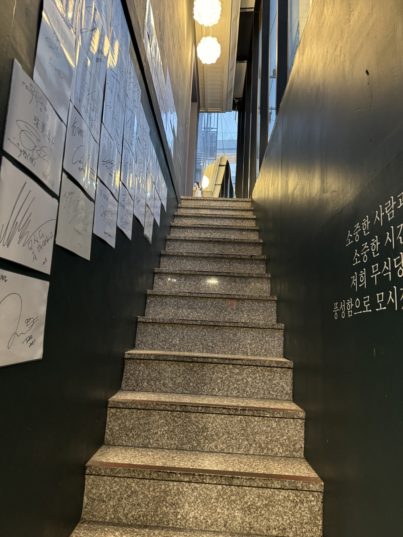 계단에 연예인과 인플루언서들 사인이 많네요.