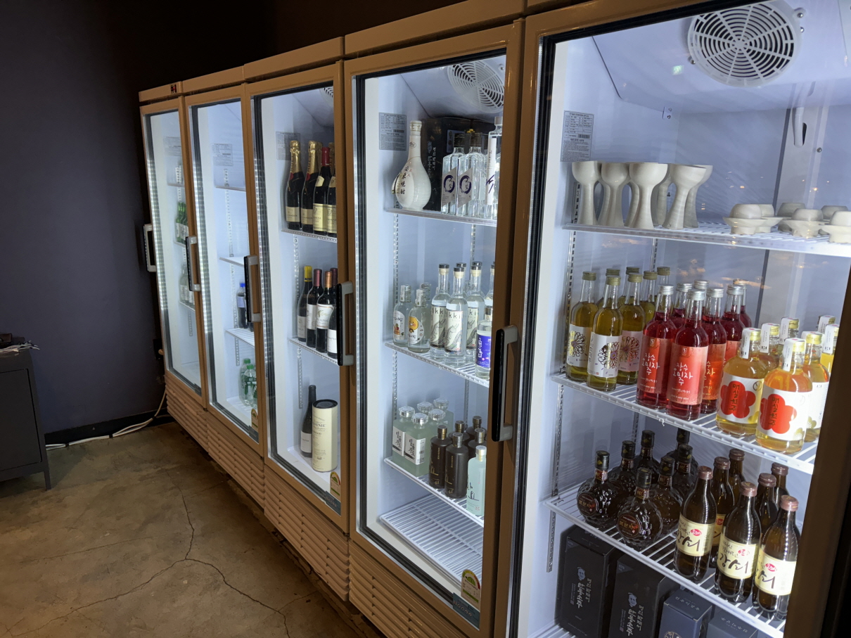 이층의 주류 냉장고에는 각종 와인과 고급 술들이 가득합니다.