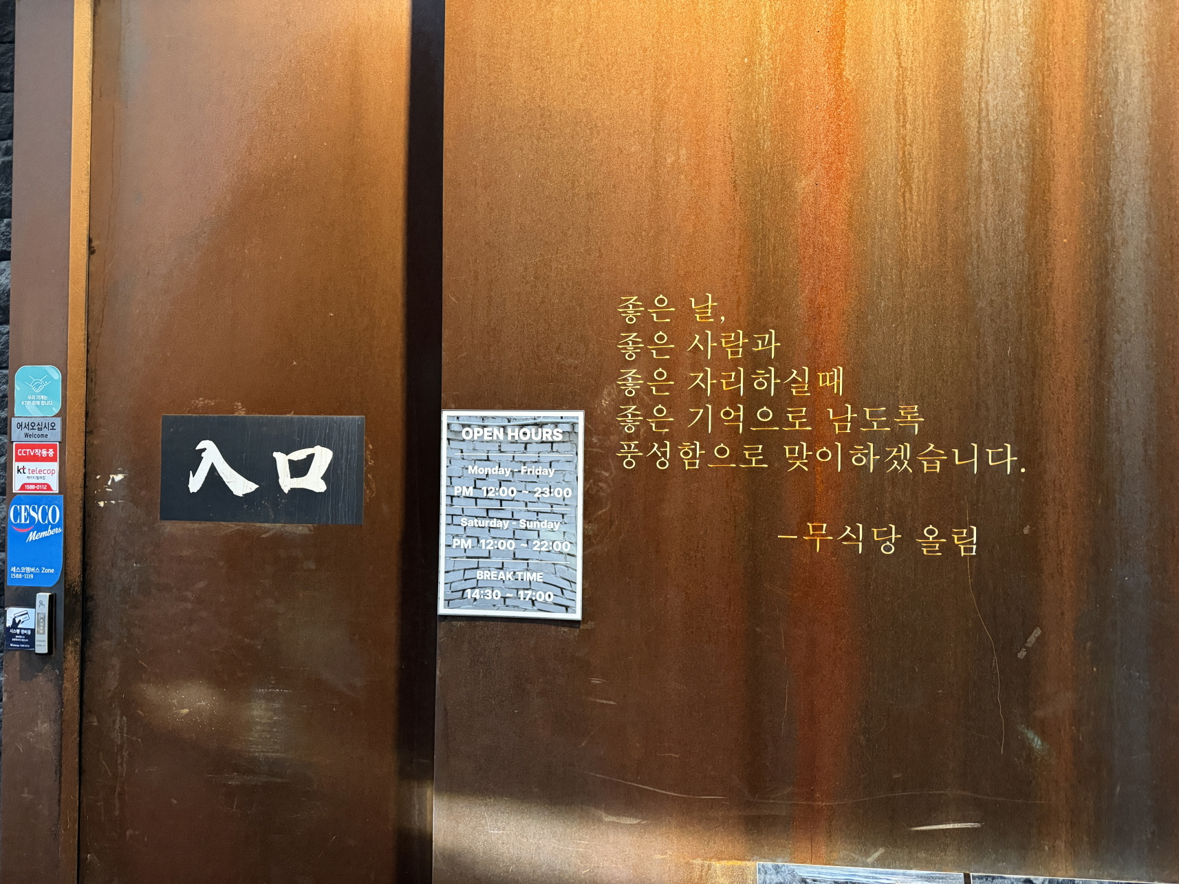 고급 한우 전문점의 느낌을 물씬 풍기는 입구입니다.