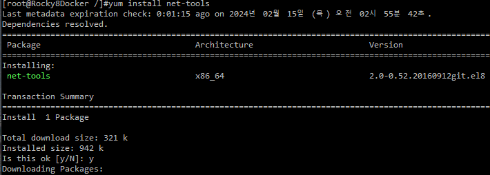 docker를 기본 설치하면 ifconfig가 없기 때문에 네트워크 정보를 볼 수없다.