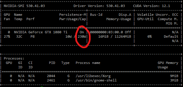 nvidia-smi -pl 230