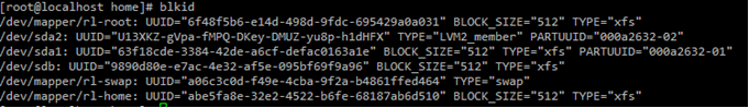 /dev/sdb: UUID="9890d80e-e7ac-4e32-af5e-095bf69f9a96" BLOCK_SIZE="512" TYPE="xfs"
