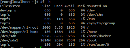 /dev/sdb 932G 6.6G 925G 1% /home/docker