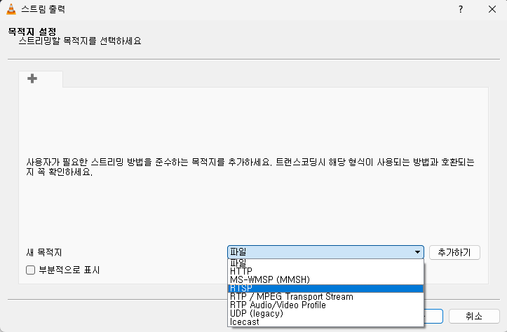 추가하기를 눌러서 rstp 주소를 생성합니다.