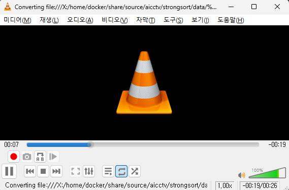 프로그래스 바로 재생이 시작되는 것을 볼수 있습니다. 재생 중 화면이 보이지는 않습니다.