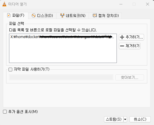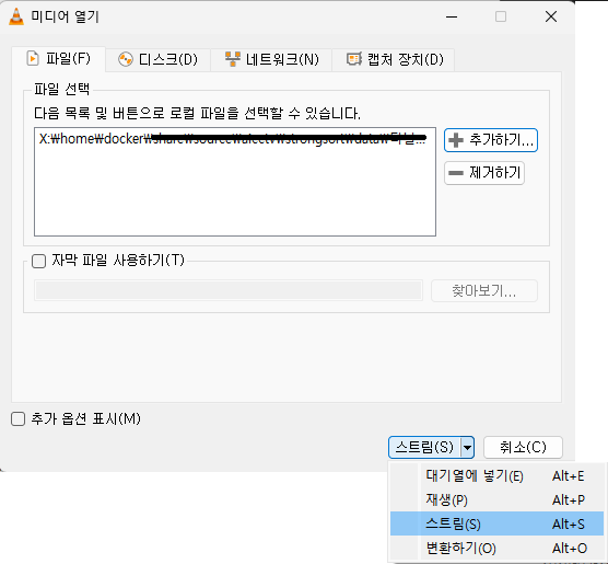 이제 vlc를 하나 더 띄워서 이 rtsp 스트림을 수신해서 재생해 보겠습니다.