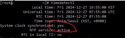 이후에 다시 timedatectl로 확인해 보면 정상적으로 등록되고 시간 정보도 동기화 된것을 확인할 수 있습니다.