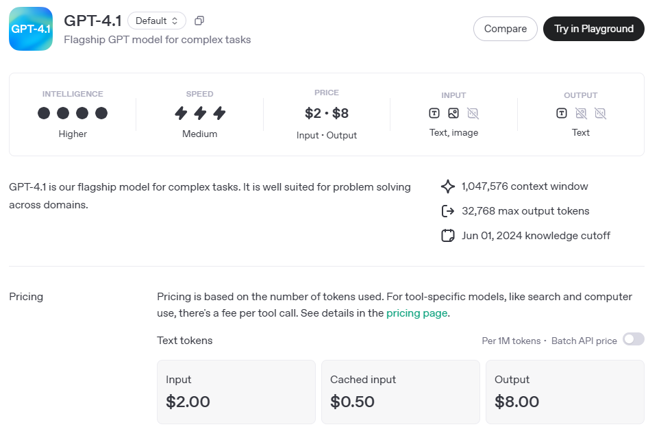 | gpt-4.1 | $2.00 | $0.50 | $8.00 |