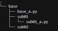아래와 같이 폴더가 구성되어 있고 base_a.py를 디버깅한다면 그냥 평소대로 하면 되겠지만