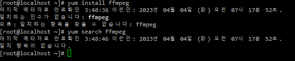 기본 repo에 ffmpeg 이 있는지 확인해 봅니다. 역시 없네요.