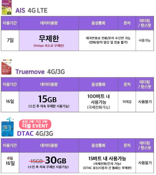 항상 태국을 갈때마다 현지 유심(USIM)을 어떤것을 선택 할지 고민이 되시죠?