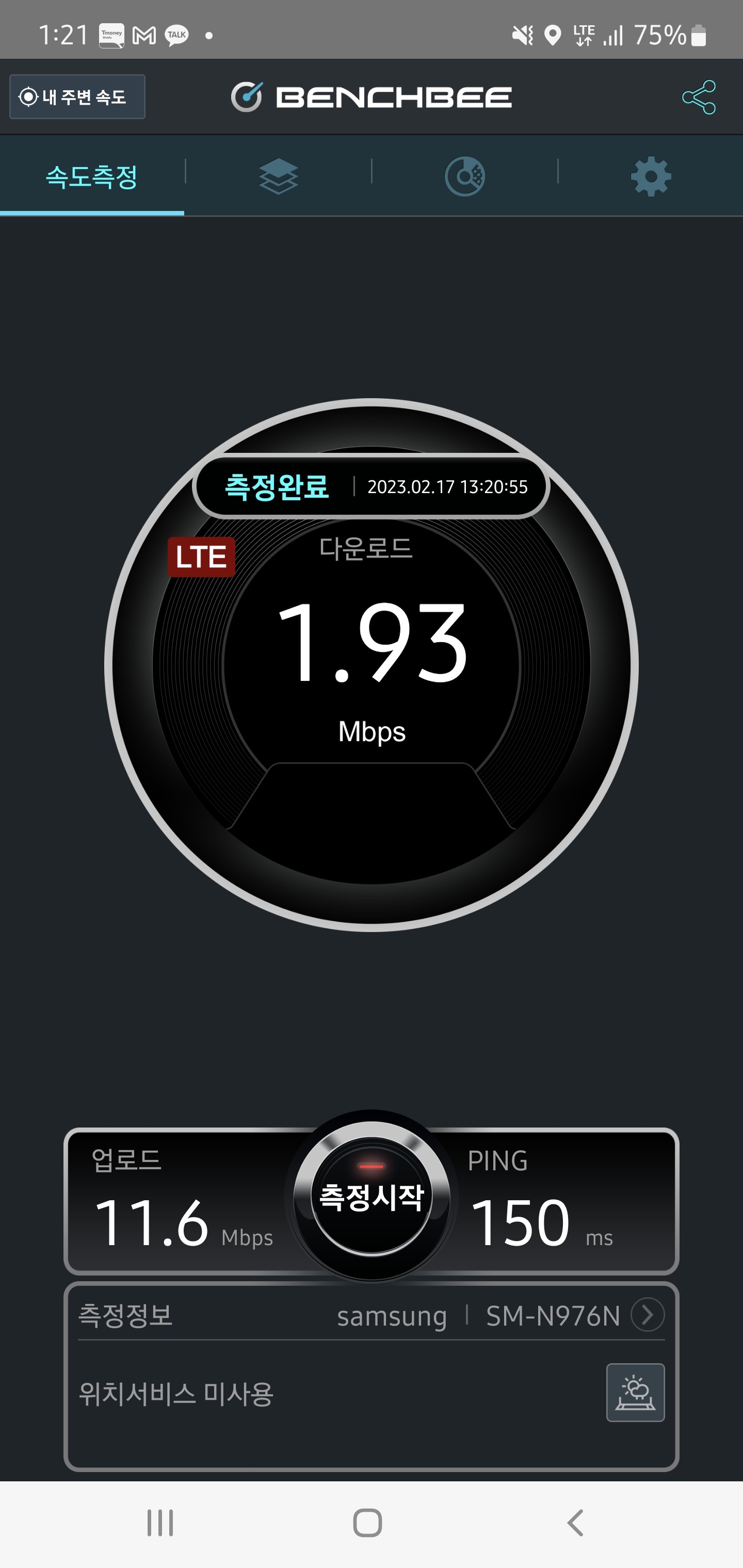 그다지 지역별 차이도 없고 1~2M 속도가 나오는 지역에서도 구글지도를 사용하는데는 아무 문제가 없었습니다. 찍은 사진이나 동영상을 인스타 업로드하는 경우는 살짝 기다리는 정도.. 지만 그래도 못참을 정도는 아니었습니다.