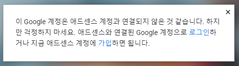그런데 에드센스로 로그인을 했더니 다음과 같이 나옵니다. 따로 에드센스 계정에 가입을 해야 하나봅니다.