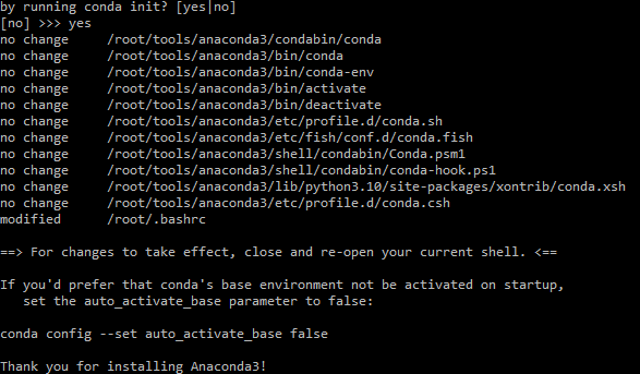 를 해주지 않으면 shell이 실행하면 기본으로 conda 환경으로 시작되버린다. 필요할때만 전환 하려면 반드시 실행한다.