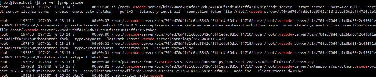 1단계에서 해결이 되지 않았으면 서버에 저장되어 있는 vscode 관련 파일을 삭제합니다. 여기에 토큰과 접속 로그 등등도 같이 저장 되어 있습니다.