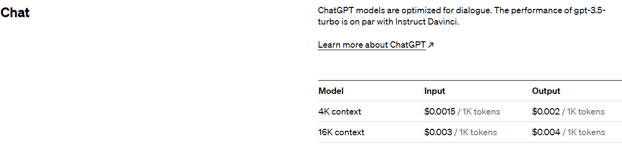 (2023/06/19 chatGPT 3.5는 API 가격 변경으로 갱신)