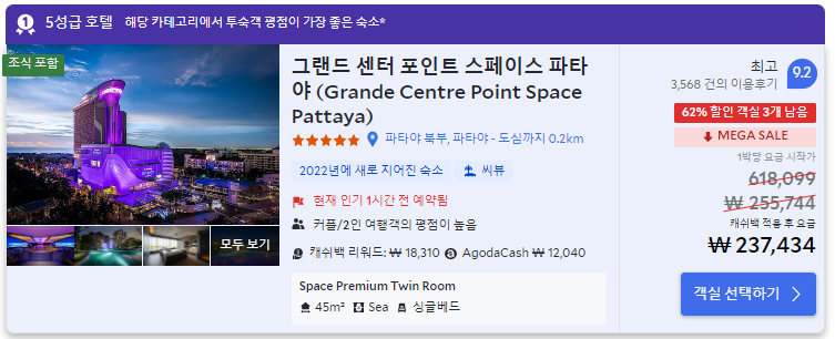 아고다 캐쉬백 리워드는 일부 호텔 예약에 대해서만 제공되며, 예약 시 아고다 캐쉬백 리워드가 적용되는지 여부는 예약 페이지에서 확인할 수 있습니다.