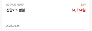 드디어 통장에 캐쉬백 리워드 환급액이 입금되었습니다.