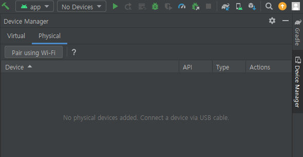 Physical을 누르면 하단에 pair using WI-FI 버튼이 보인다. 클릭