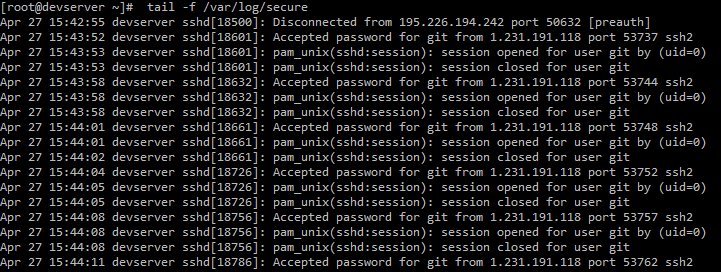 tail -f /var/log/secure