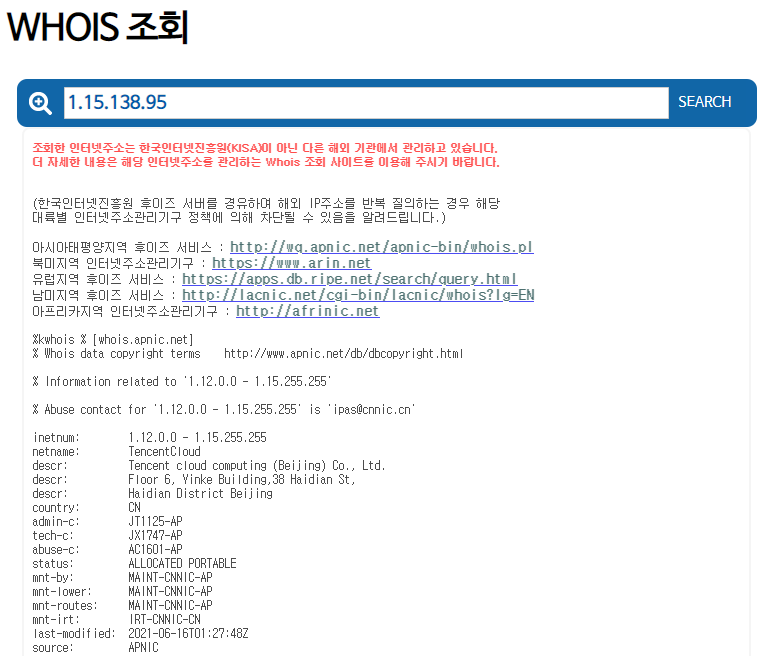 KISA 후이즈검색 whois.kisa.or.kr