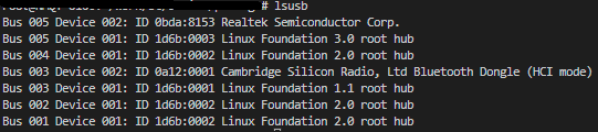 | 리눅스, USB에 장치가 연결되었는지 검사하기(libusb 사용, 블루투스 동글 등) (0) | 2023.06.07 |