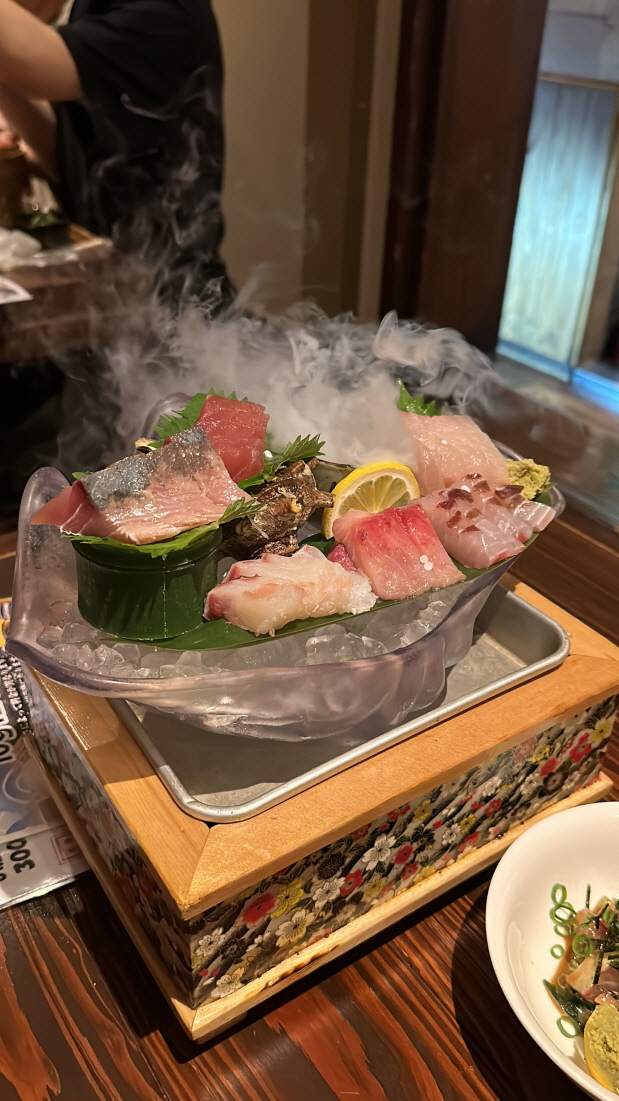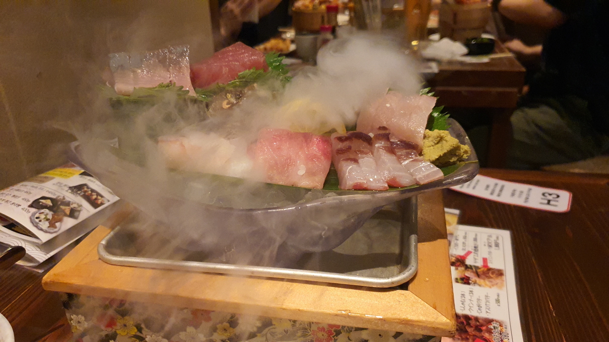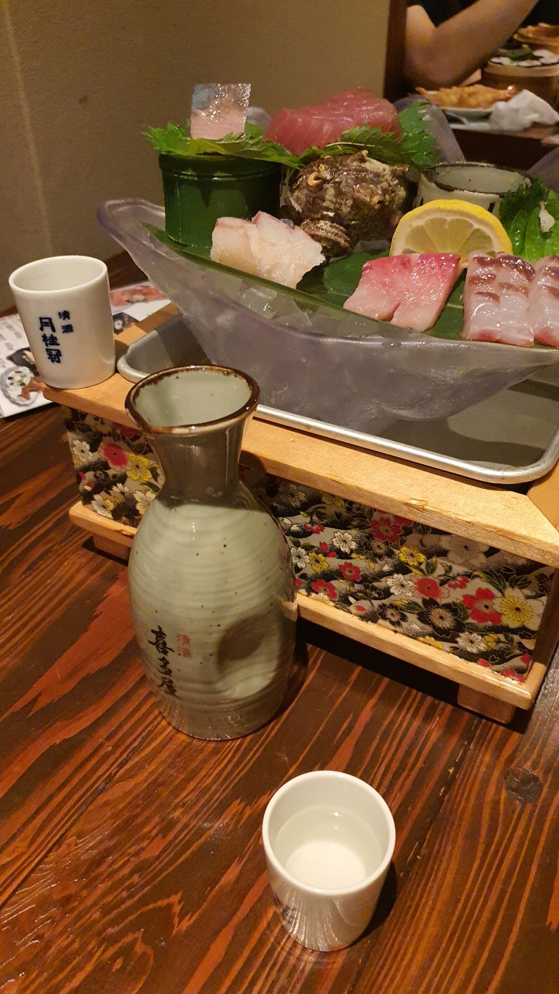 이번에는 제일 좋아하는 뜨거운사케 도쿠리(아쯔깡)를 사시미와 함께 마셨습니다
