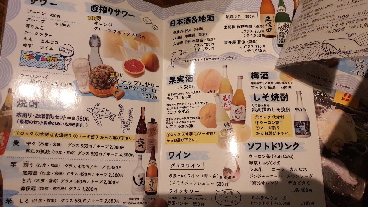 기본 자리값(오토시)가 400엔 정도입니다. 하지만 이건 뭐 어느 술집을 가나 있는것이니 별도로 하고..
