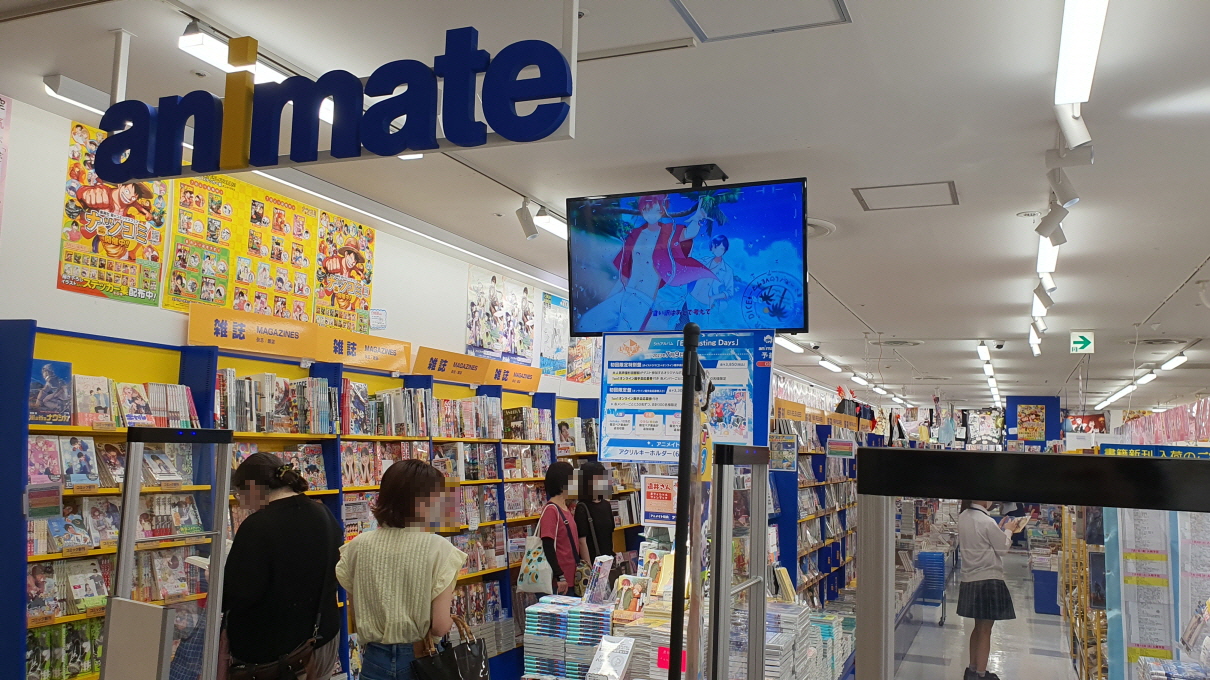 애니메이트는 일본 전국에 지점이 있는 애니메이션 굿즈 샵으로, 만화와 애니메이션 관련 상품들을 주로 취급하고 있습니다.
