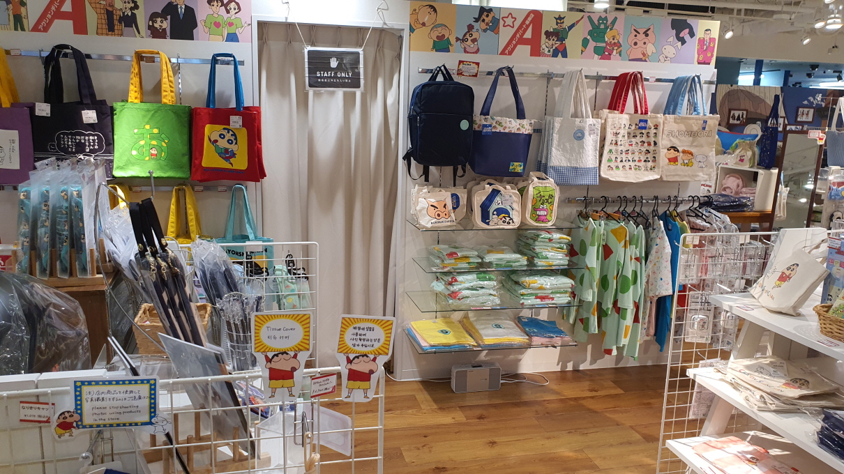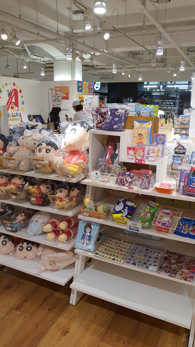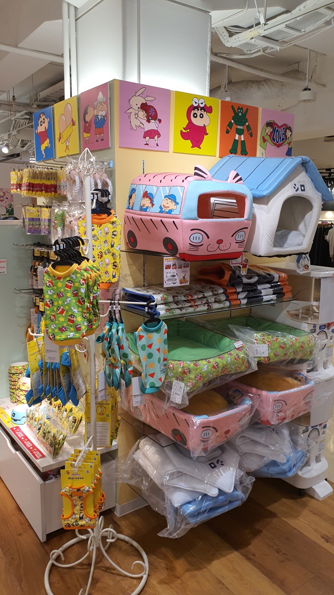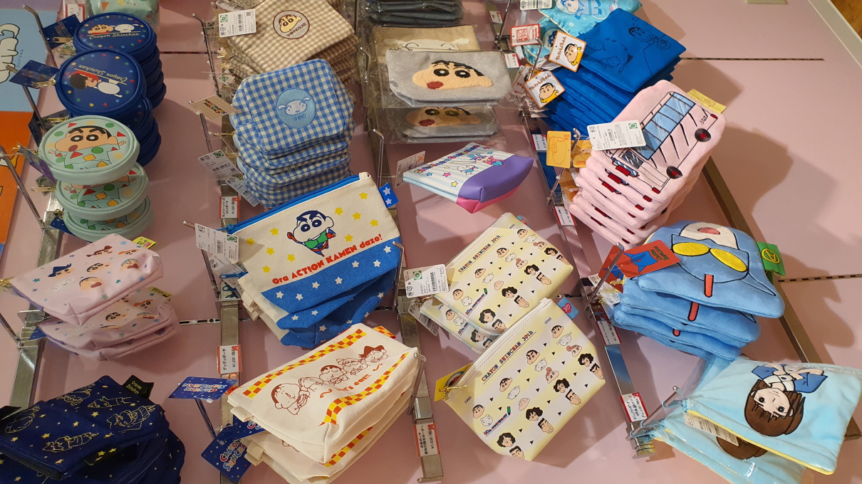 여기서 짱구 캐릭터 관련 상품들을 구매할 수 있습니다. 의류, 액세서리, 문구류, 인형, 가방, 식기류... 특히, 한정판 상품이나 독특한 상품들이 판매되고 있습니다.