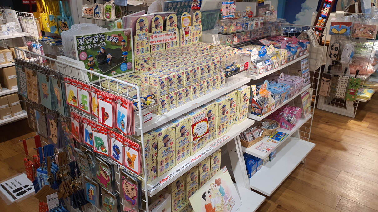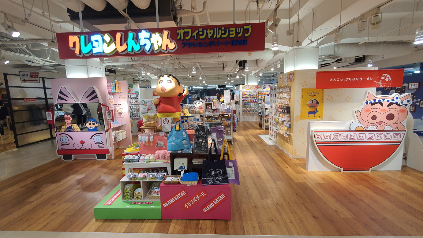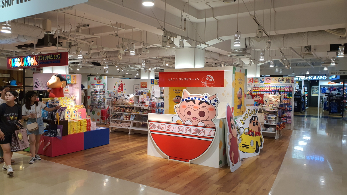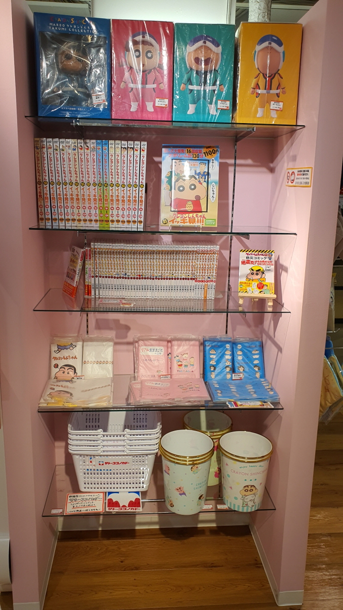 여기서 짱구 캐릭터 관련 상품들을 구매할 수 있습니다. 의류, 액세서리, 문구류, 인형, 가방, 식기류... 특히, 한정판 상품이나 독특한 상품들이 판매되고 있습니다.