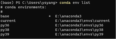 conda env list